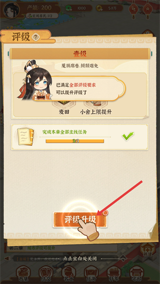 2、滿足評級要求后可進行評級升級,提升城市評級,解鎖更多經營內容,發展城市規模。