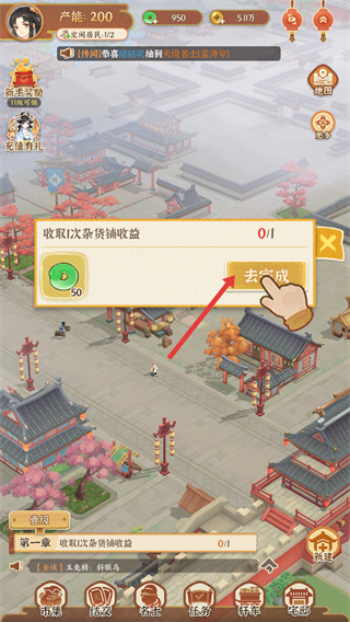 1、可收取雜貨鋪收益,完成收取任務后獲取獎勵,提升城市產能,推進經營進程。