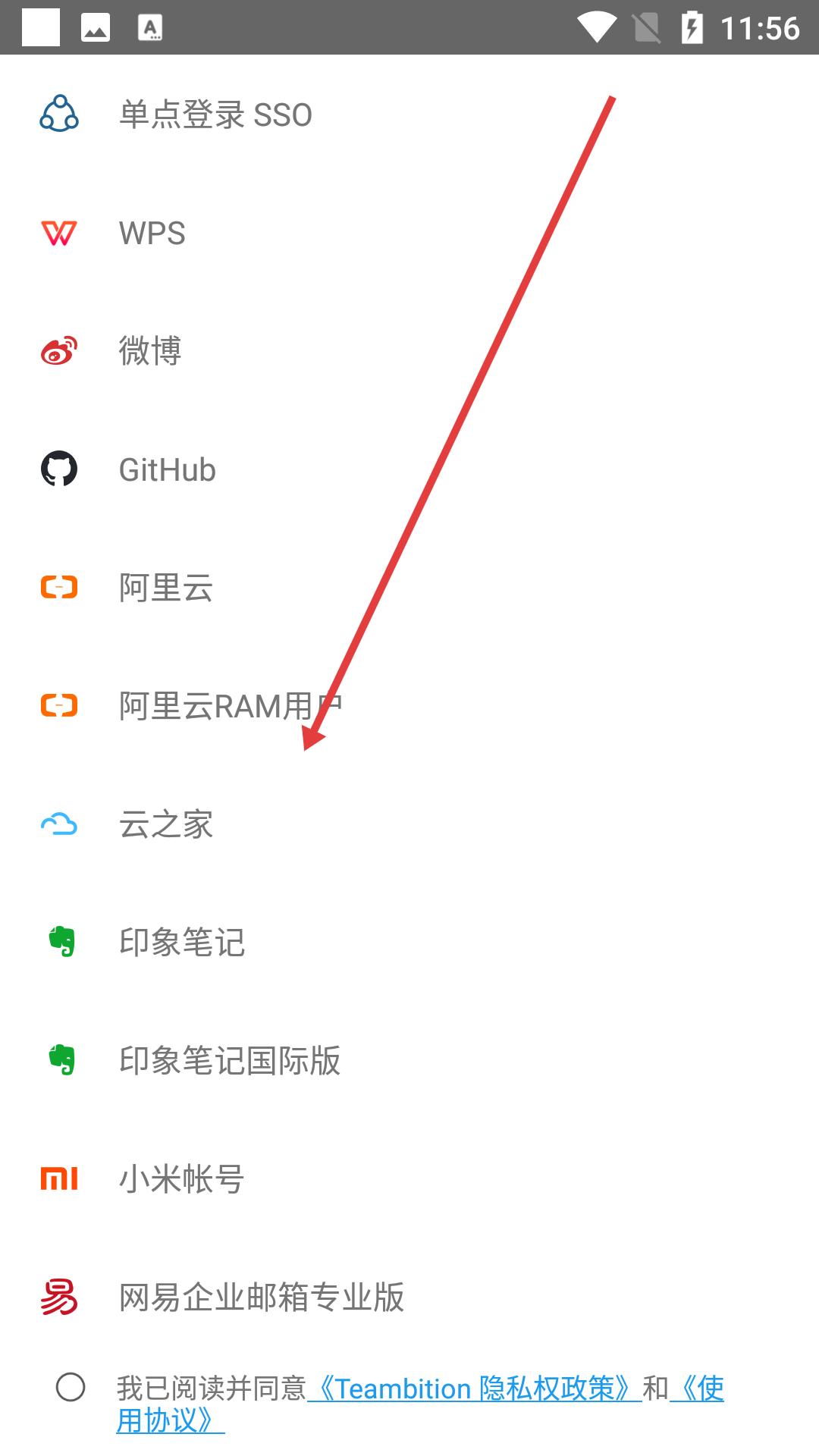 2、在登錄選項列表找到云之家并點擊,按流程驗證,完成登錄后可借助其開展協同工作、獲取學習資源。