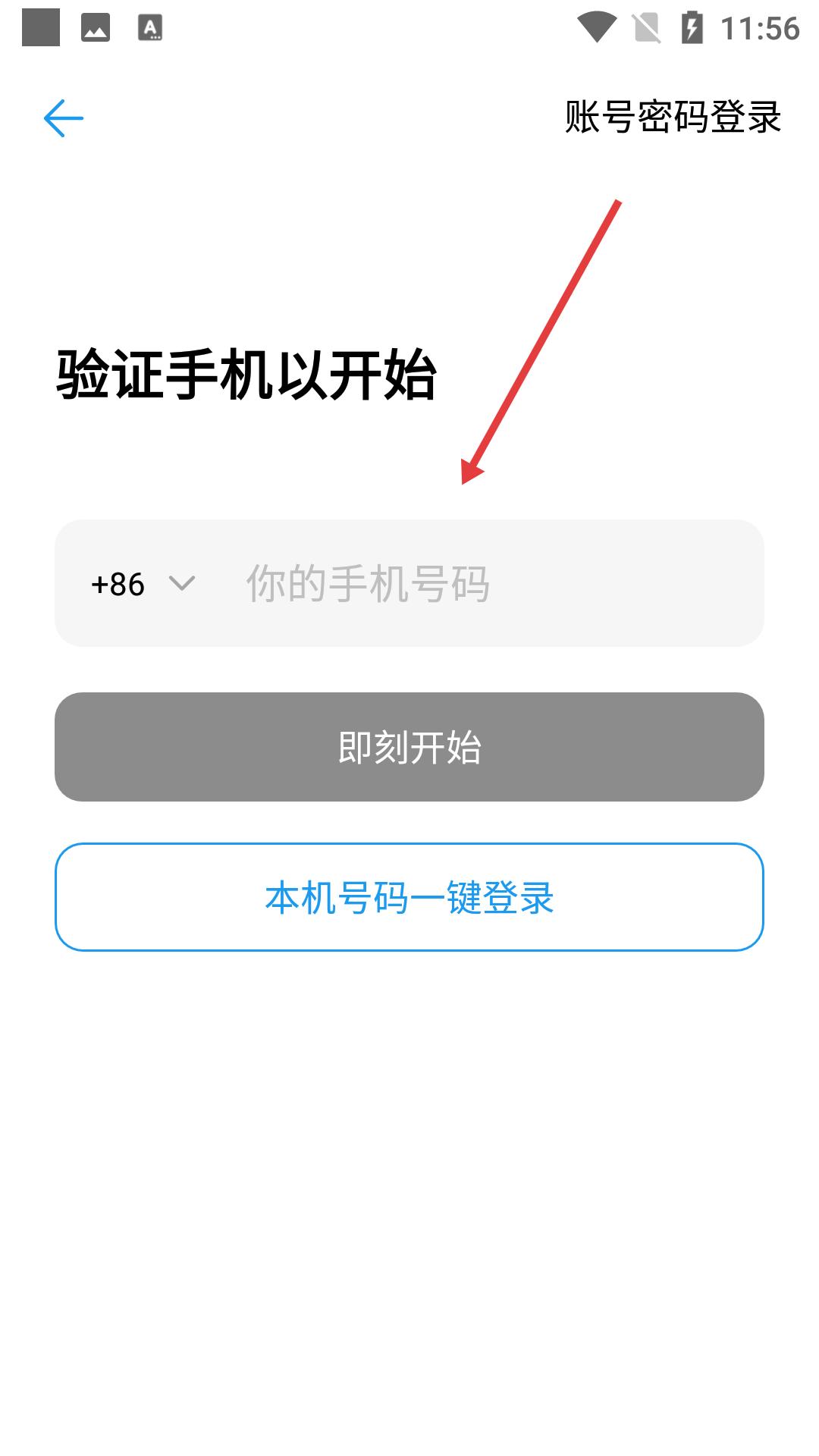 3、進入手機驗證界面,輸入手機號碼,選即刻開始或本機號碼一鍵登錄,完成驗證進入套件使用。