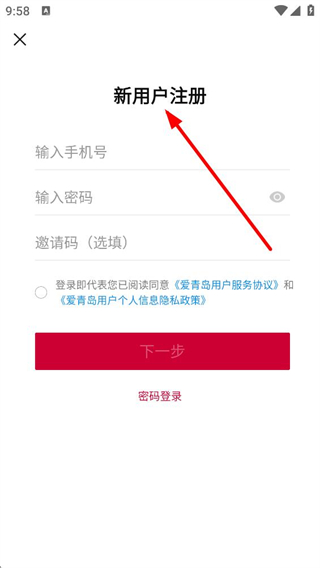 4、新用戶注冊時,輸入手機號、設置密碼,填寫邀請碼,勾選同意相關協議后點擊下一步,即可完成注冊流程。