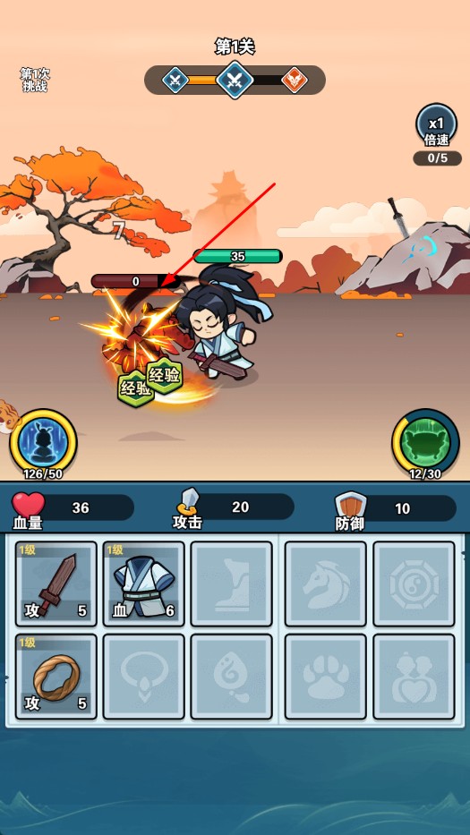 1、進入游戲關卡后,操控角色與敵人戰斗,通過攻擊敵人獲取經驗,提升角色等級,增強戰斗能力。