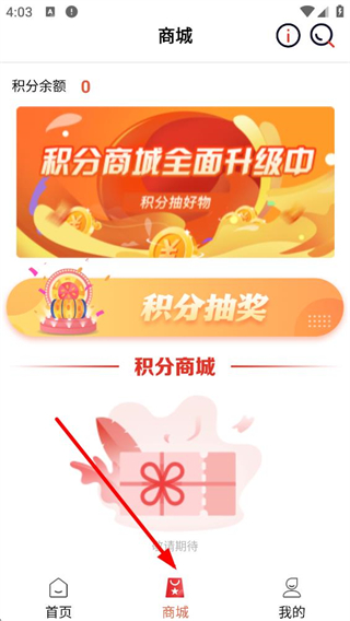 2、進入商城可查看積分余額,參與積分抽獎活動,積分商城全面升級中,可期待更多積分兌換好物的功能。