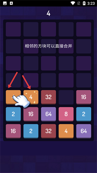 3、相鄰的數字方塊可以直接合并,操作時留意相鄰的方塊,將能合并的相鄰方塊合并,不斷提升合并的效率和分數。