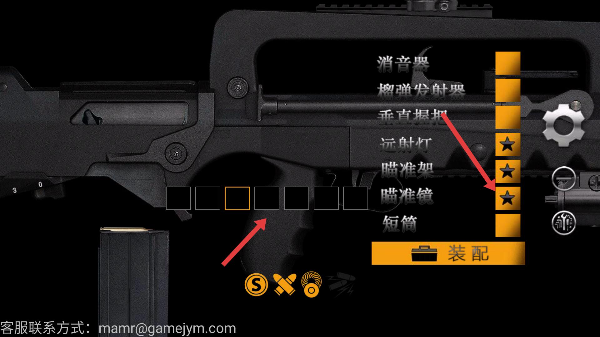 3、在裝配過程,可依次選擇不同配件,每個配件都有對應的位置,合理搭配配件,提升武器性能。