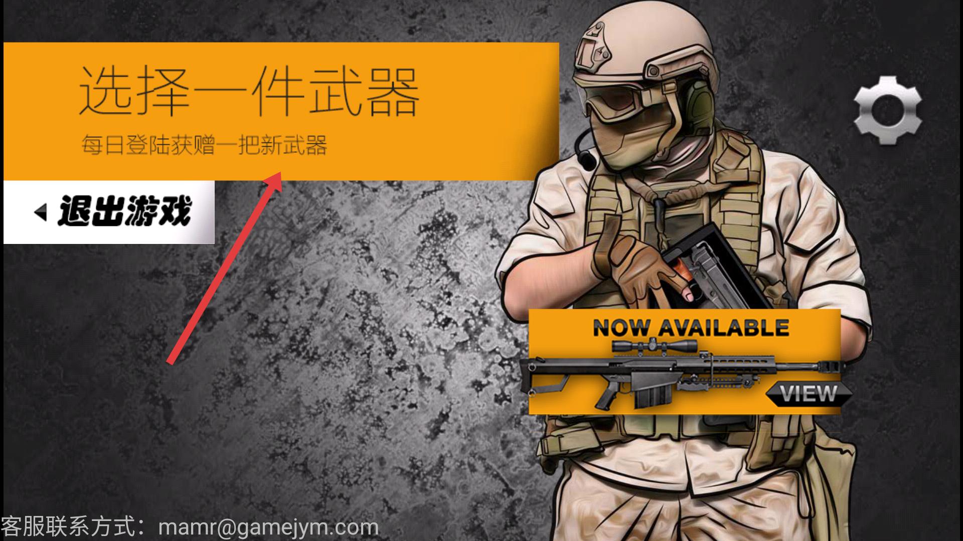 1、游戲初始界面,可選擇武器,每日登陸還能獲贈新武器,選好武器后,即可進入后續武器裝配等環節。