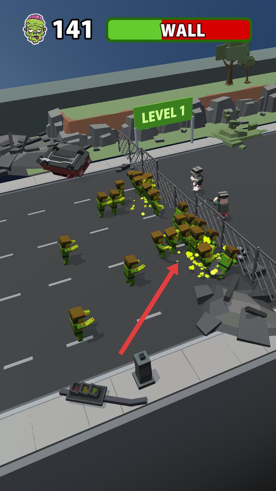 2、派出僵尸后,僵尸會自主朝敵方移動,與圍欄處敵方士兵交戰,可多次點擊持續補充僵尸,靠數量沖擊突破防線。
