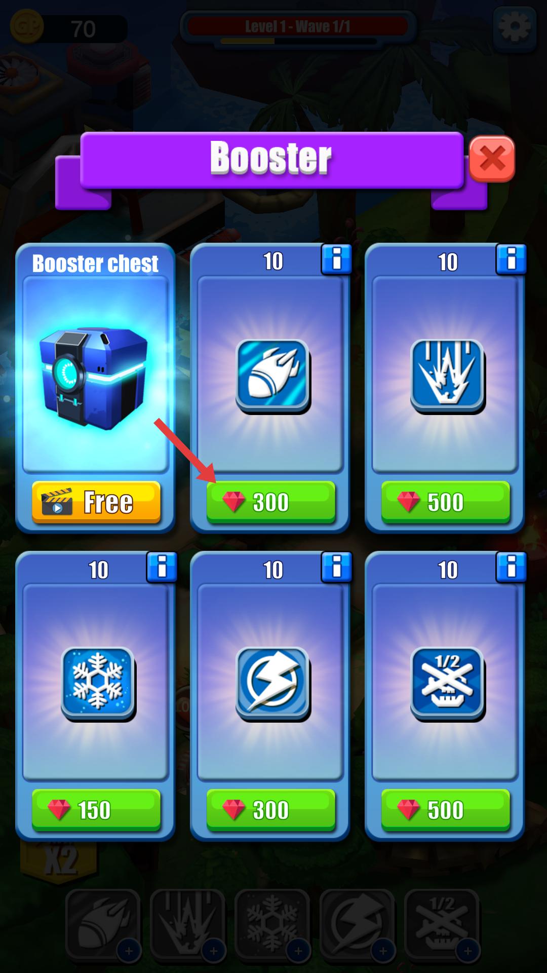 4、在Booster界面,有多種增益道具,花費300鉆石可購買火箭類道具,助力戰斗,提升戰斗效率。