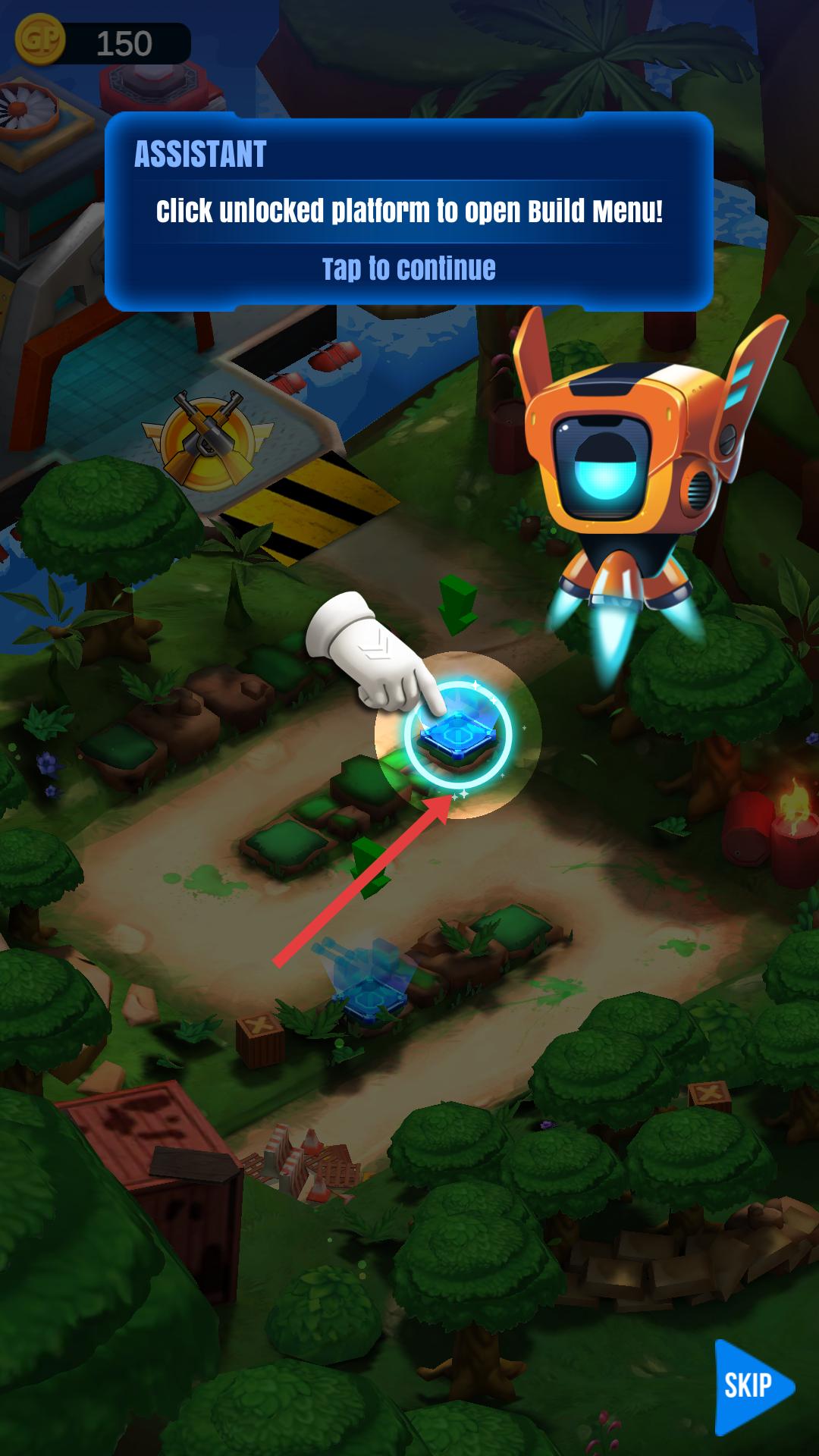 1、游戲界面有提示,點擊解鎖的平臺,可打開建造菜單,按提示操作,開啟建造流程。