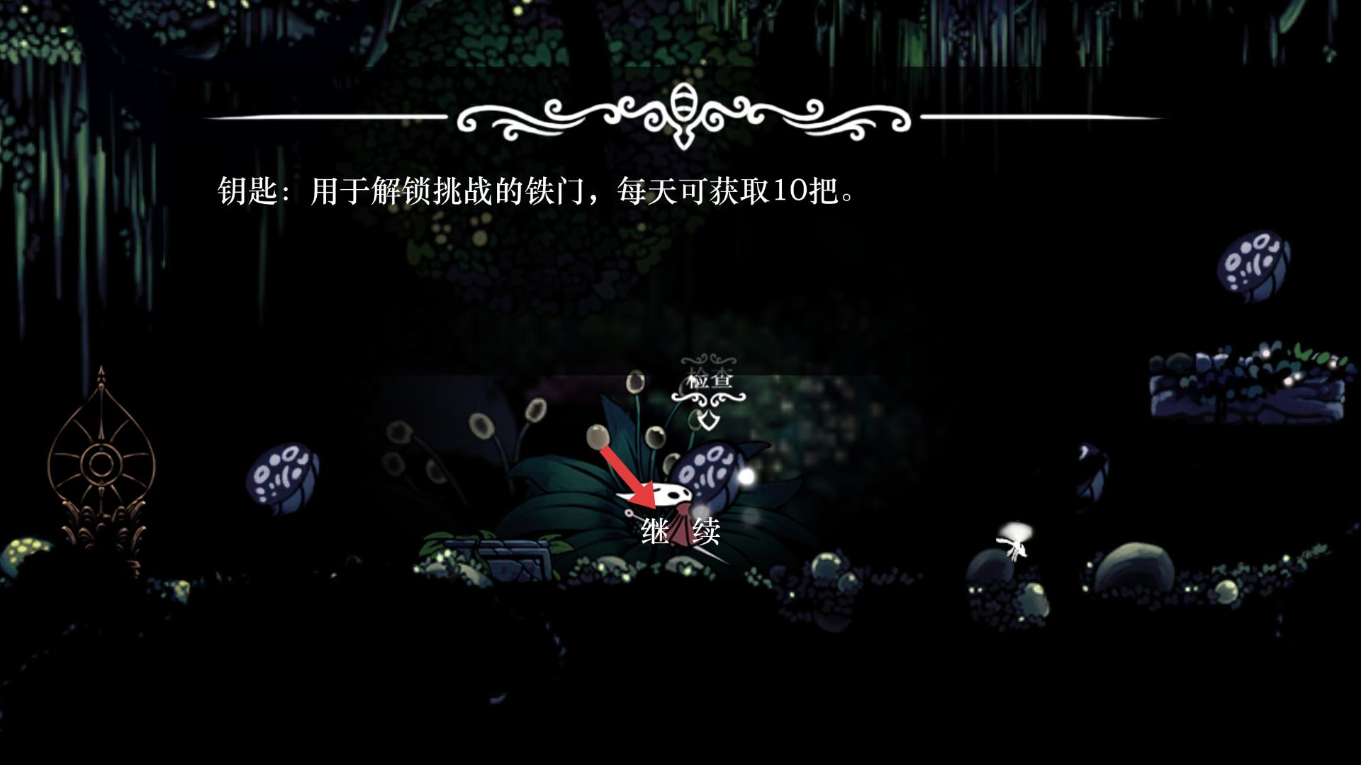 3、游戲里有鑰匙相關提示,鑰匙用于解鎖挑戰的鐵門,每天可獲取10把,了解后點擊繼續,能接著推進游戲流程。