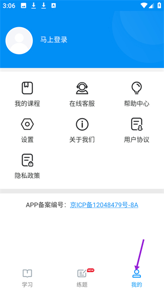 4、我的界面可登錄查課程,有在線客服等功能,還有設置等選項,方便用戶管理個人駕考學習事務。
