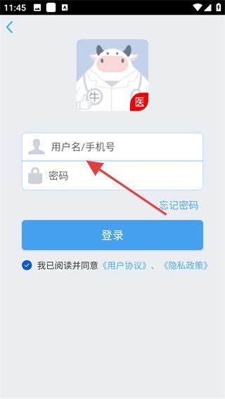 4、若選擇用戶名密碼登錄,輸入用戶名手機號和密碼,勾選同意用戶協議和隱私政策,點擊登錄按鈕,進入軟件系統,開始使用醫療工作平臺的服務。