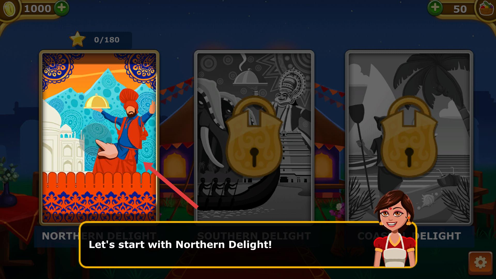 1、游戲初始界面有不同的關卡選項,選擇Northern Delight關卡,即可進入該關卡的烹飪場景,開始制作美食。