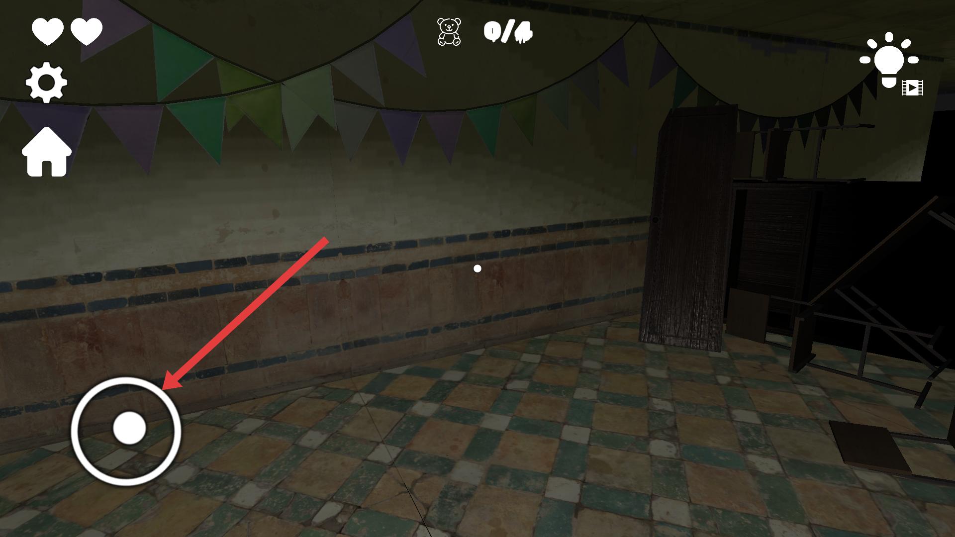 1、進入房間后,利用左側的虛擬搖桿操控角色移動,在房間內探索,尋找可能存在的道具或線索,推進游戲進程。