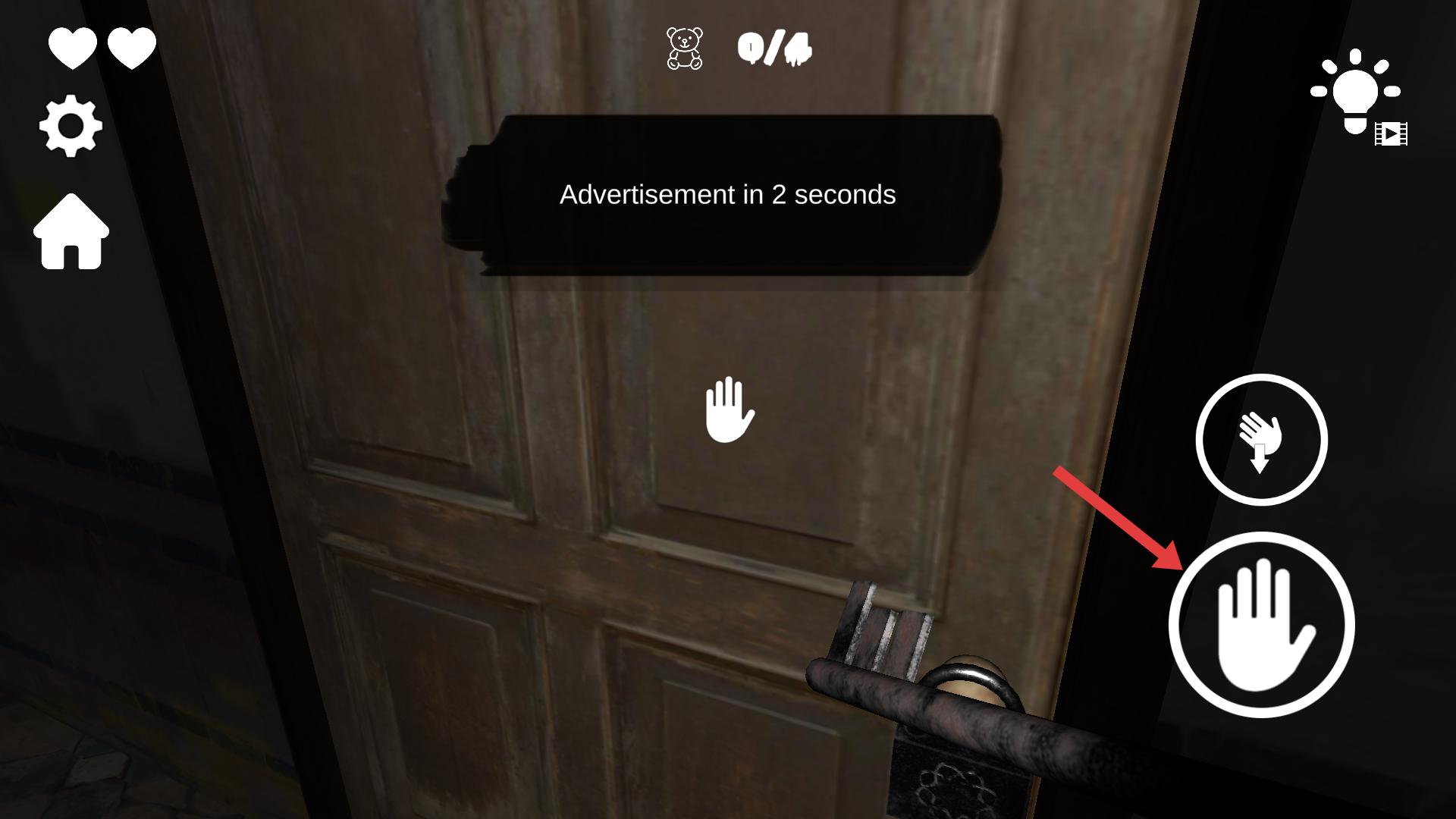 4、遇到帶鎖的門時,界面會提示廣告倒計時,倒計時結束后,點擊右側手掌圖標,可嘗試開啟門,進入新區域。