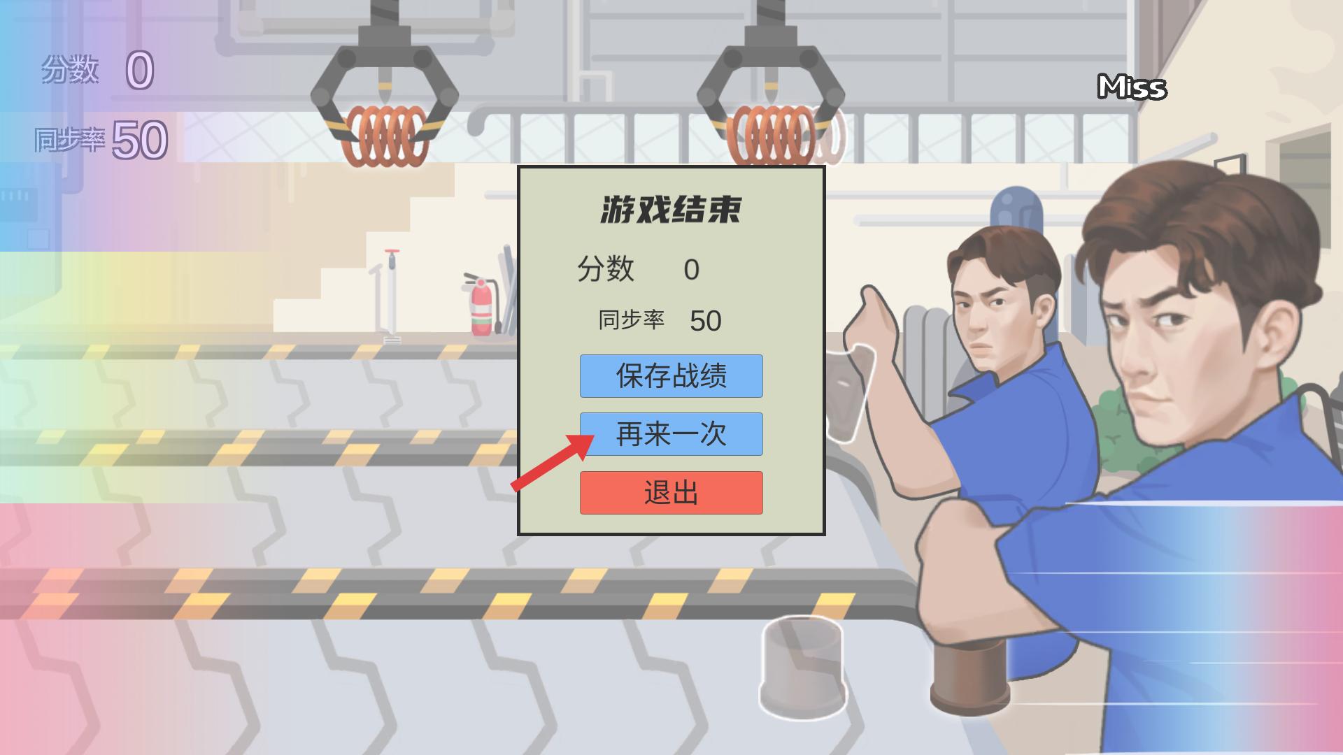 3、若游戲結束界面會顯示分數和同步率等信息,此時可點擊再來一次按鈕,重新開始游戲挑戰。