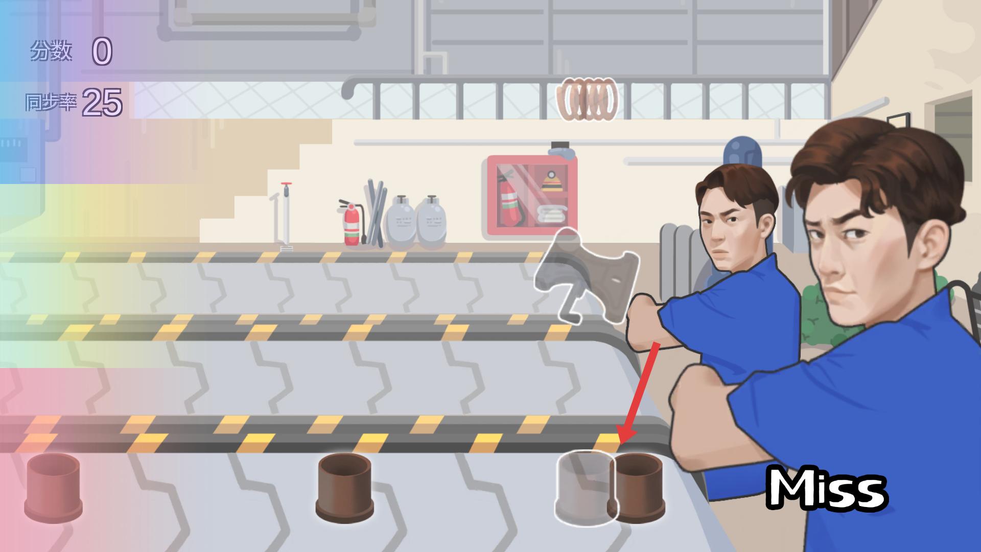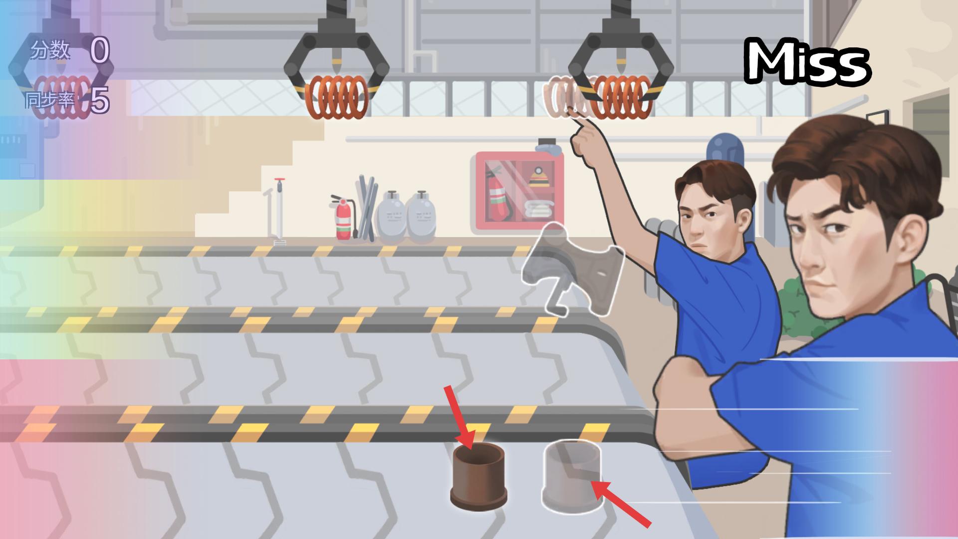 4、要專注道具的下落時機,確保其準確落入容器,若操作失誤出現Miss,需調整節奏,提升精準度。