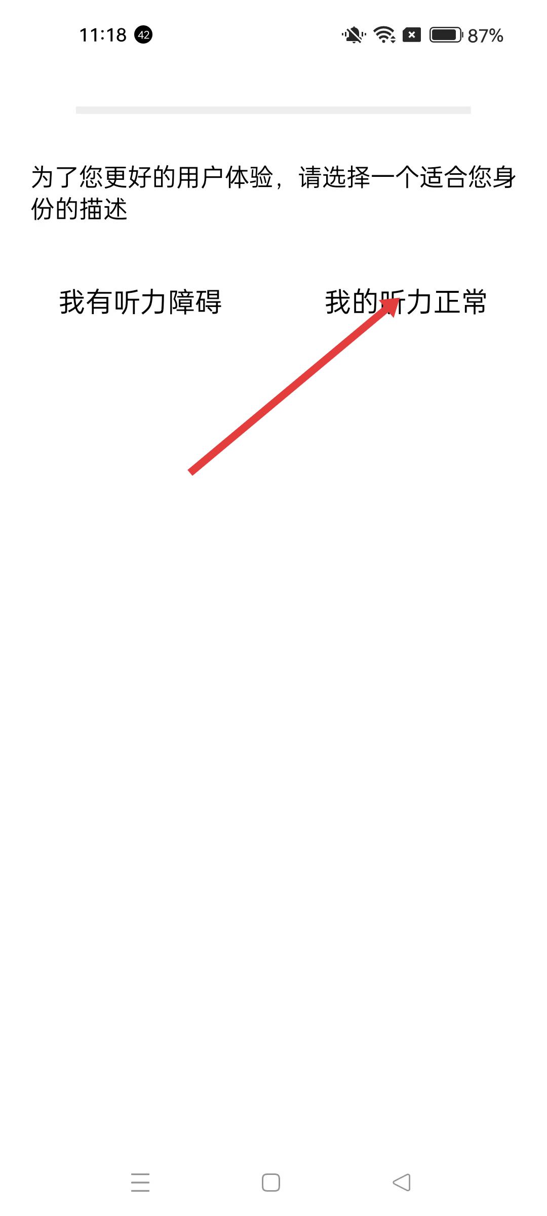 3、登錄后,選擇身份描述,若聽力正常則點擊我的聽力正常選項。