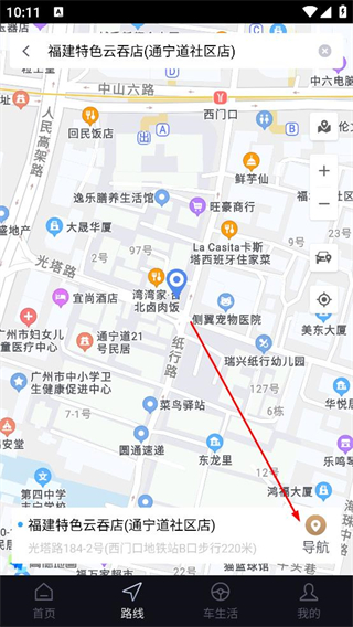 3、在路線頁面選擇具體地點后點擊導航按鈕,可開啟導航功能,按照提示前往目的地。