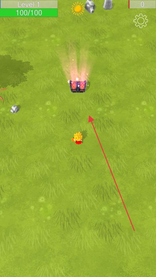 1、進入怪物防御游戲,操控角色向發光寶箱移動,接近寶箱獲取獎勵,同時留意周圍石塊等環境元素,為后續戰斗做準備。