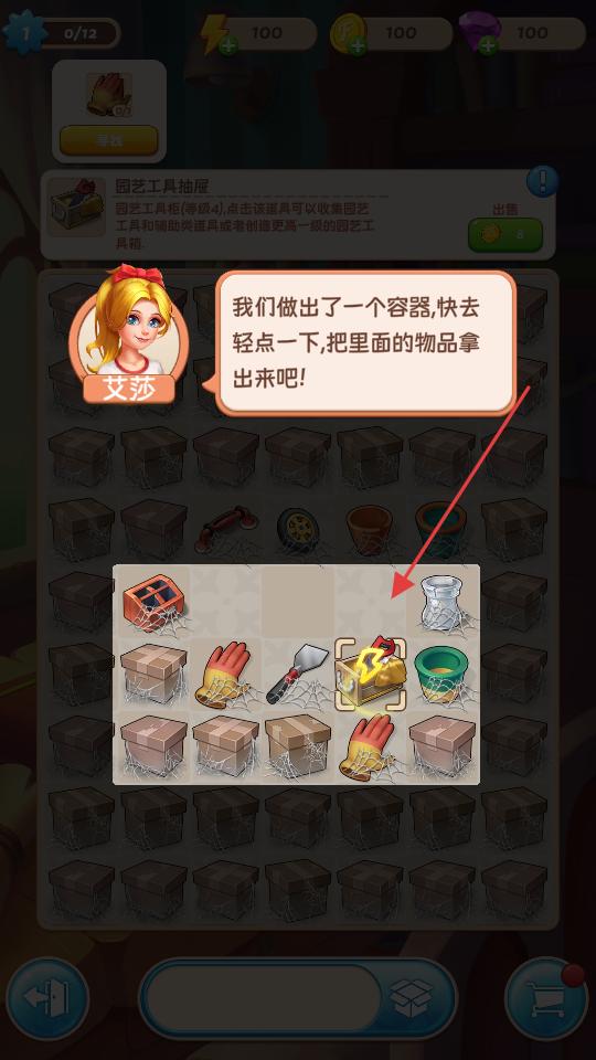 3、制作出容器后,點擊容器,取出內部物品,獲取新道具,豐富工具庫,助力家園裝扮。