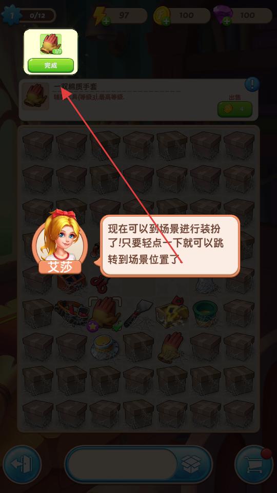 4、完成棉質手套制作,點擊完成按鈕,根據提示輕點跳轉場景,進入家園區域,開始裝扮操作。