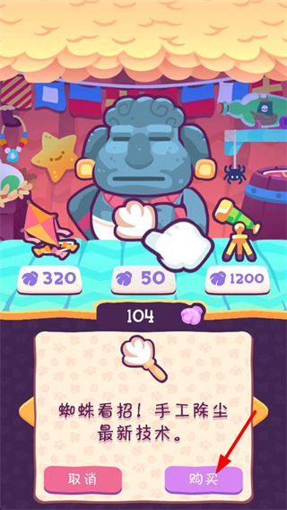 3、積累足夠貝殼后,可在商店界面選擇物品,比如點擊購買手工除塵工具,用貝殼兌換所需的物品或服務。