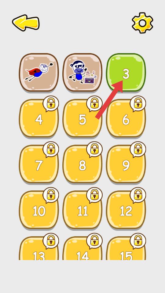 1、進入游戲,界面有多個關卡,選擇標有3的綠色關卡按鈕,進入第關卡,開啟本關的趣味挑戰。