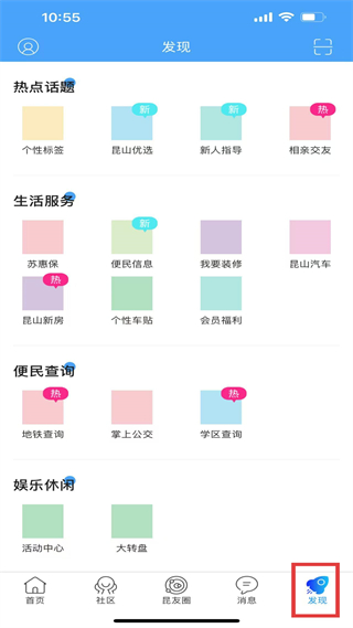 4、發現板塊分熱點話題、生活服務等分類,有個性標簽、蘇惠保等功能,還有地鐵、學區查詢等便民服務,滿足用戶多樣需求。
