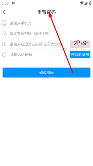 4、若忘記密碼,進入重置密碼界面,輸入手機號設置新密碼,填寫圖形驗證碼和短信驗證碼后,點擊修改密碼完成重置。