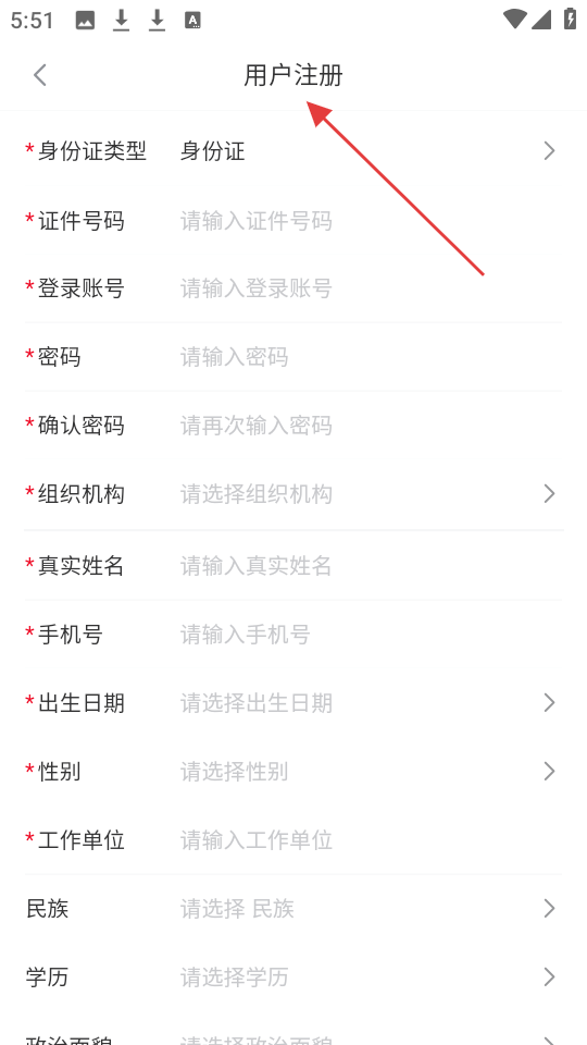 2、用戶注冊頁面,需如實填寫身份證類型、證件號碼等詳細信息,涉及身份、機構、聯系方式等多方面。