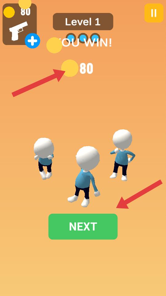 4、順利通關后,會顯示YOU WIN,獲得相應金幣獎勵,點擊NEXT按鈕,即可進入下一關,繼續射擊挑戰。