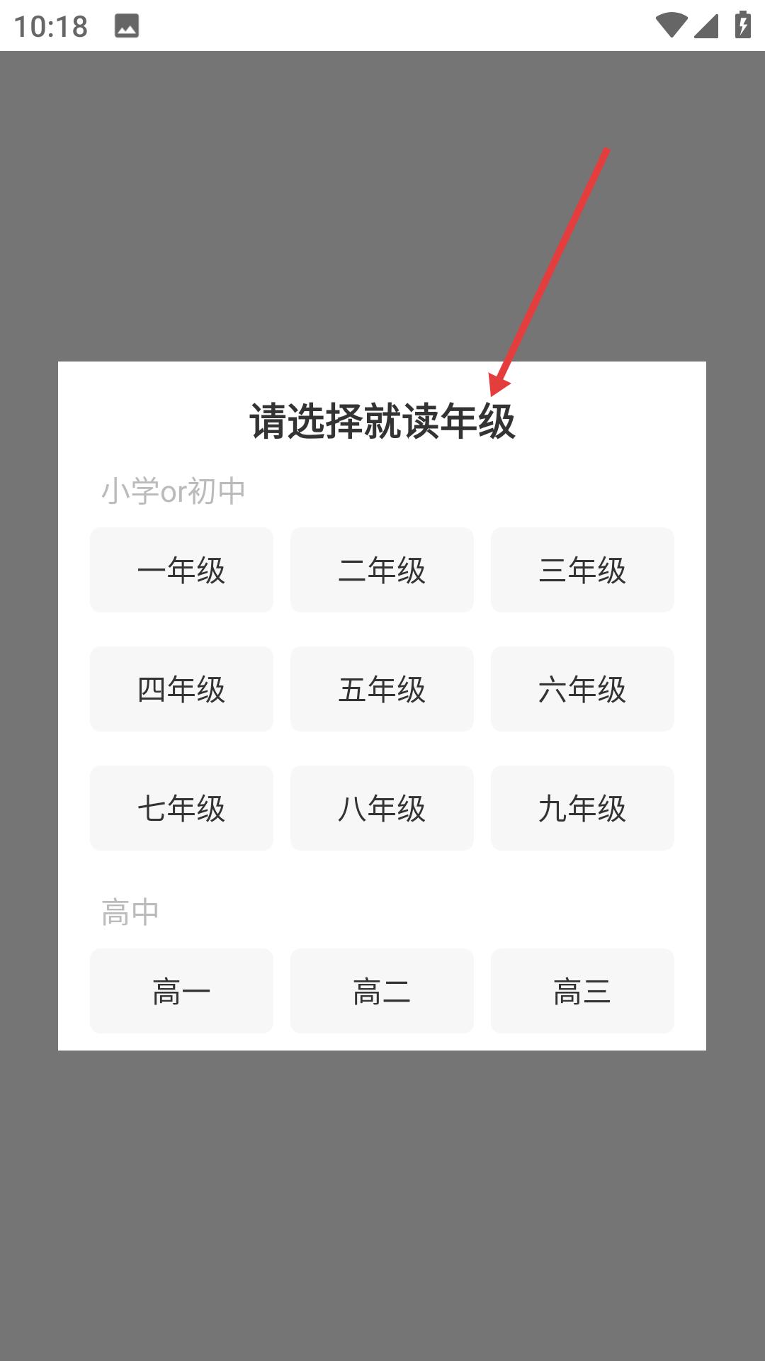 2、同意協議后,進入年級選擇界面,這里涵蓋小學、初中和高中各年級選項,根據自身情況點擊對應年級即可。
