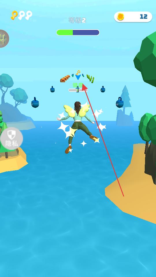 4、進入等級2角色獲得翅膀等新外觀,操控角色在空中移動,收集上方的物品,避開藍色水壺等障礙物,繼續跑酷并體驗新的風格變化。