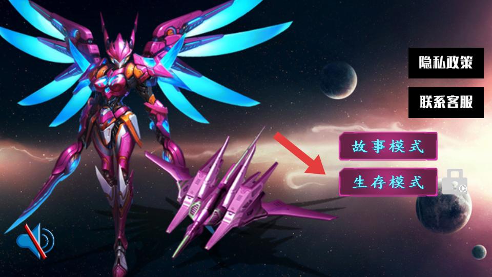 1、游戲初始界面有炫酷機甲和飛船,還有故事模式,生存模式等選項,選擇喜歡的模式,就能開啟機甲戰斗之旅。