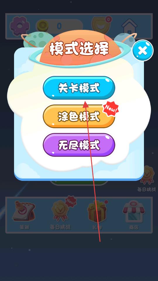 2、在游戲模式選擇界面,點擊太空鳥逃脫選項,進入該游戲的模式選擇彈窗,看到關卡模式,涂色模式無盡模式等不同模式供選擇。
