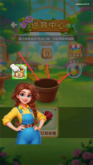 2、在培育中心,將朱紅郁金香等花種放入花盆,為鮮花培育打下基礎,等待后續培育步驟。