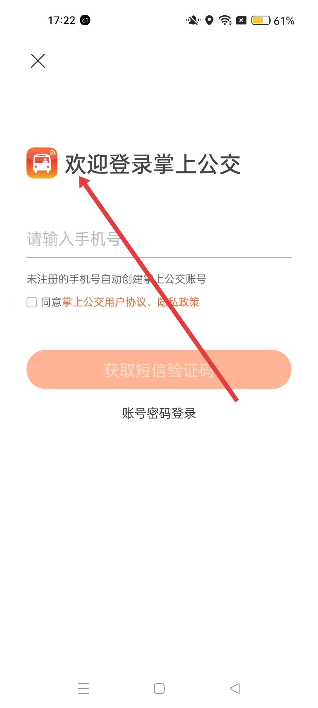 3、進入登錄界面,需輸入手機號并獲取驗證碼,勾選同意用戶協議和隱私政策后,完成掌上公交賬號登錄。