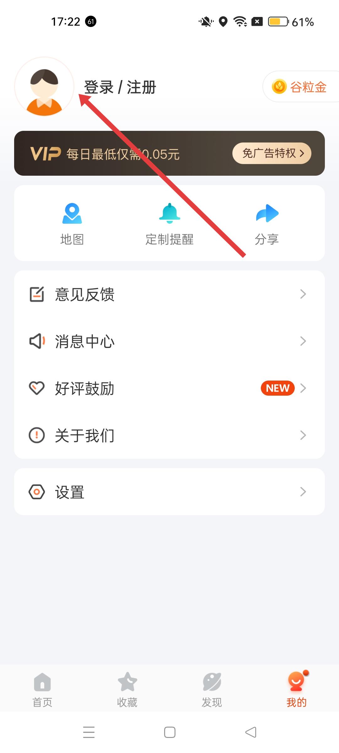 2、我的界面,可看到登錄、注冊入口,還有地圖、定制提醒等功能選項,點擊登錄、注冊可進入賬號登錄流程。