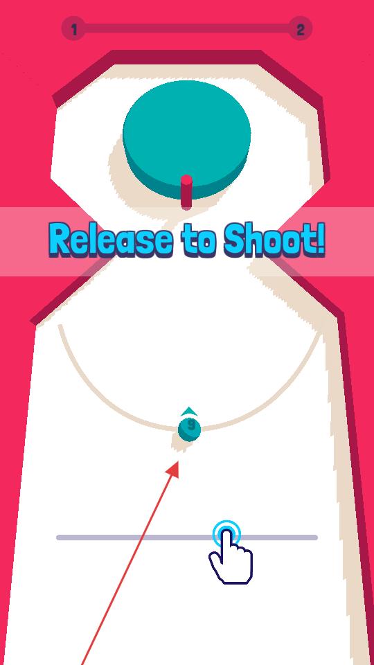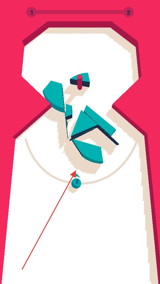 1、進入關卡界面,中間大圓盤下方有彈珠,長按底部手指標識區域,拉動彈珠調整發射角度與力度,松開手指發射彈珠,沖擊上方圓盤目標開啟破壞流程。