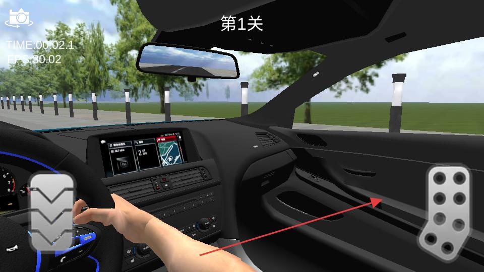 3、進入第1關駕駛場景,模擬真實駕駛操作,控制方向盤與油門剎車,躲避障礙,沿路線行駛,完成關卡挑戰。