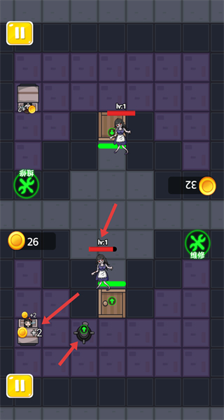 2、在游戲場景利用金幣升級建筑和炮臺,抵御敵人進攻同時注意維修建筑,保持防御能力積累更多金幣。