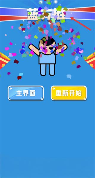 4、成功抵御敵人后界面顯示藍方勝,可選擇主界面回到游戲主菜單或點擊重新開始再次挑戰該關卡。