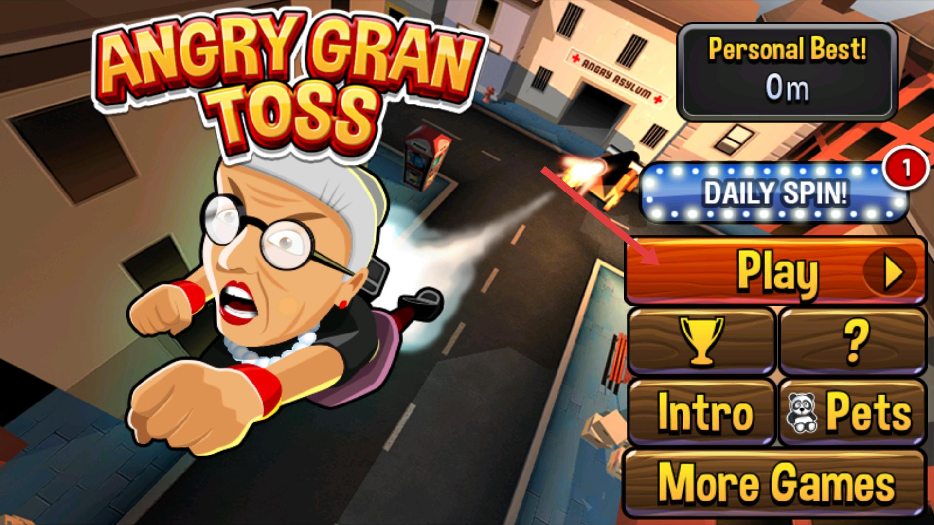 1、游戲主界面有Play按鈕,點擊該按鈕,即可進入游戲,開啟發射老奶奶的挑戰,開始體驗游戲玩法。
