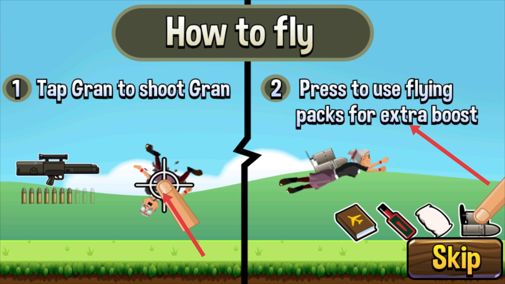 3、飛行教程可點擊老奶奶可射擊,還能按壓使用飛行包獲得額外推進力,合理運用這些操作,能讓老奶奶飛得更遠。