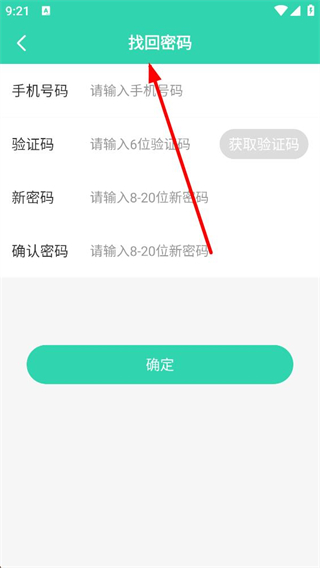 4、進入找回密碼界面,填寫手機號碼并獲取輸入驗證碼,設置新密碼并再次確認,完成后點擊確定,即可重置密碼以便后續登錄。