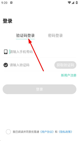 1、進入登錄界面可選擇驗證碼登錄,先對應輸入框填寫手機號碼,再獲取并填入驗證碼,勾選協議后即可嘗試登錄,開啟后續操作。
