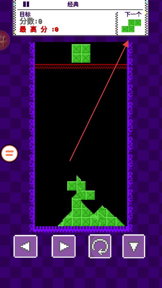 3、堆積過程中留意右上角顯示的下一個方塊形狀,提前規劃當前方塊的下落位置,使堆積的方塊更整齊,為后續方塊預留合適空間。