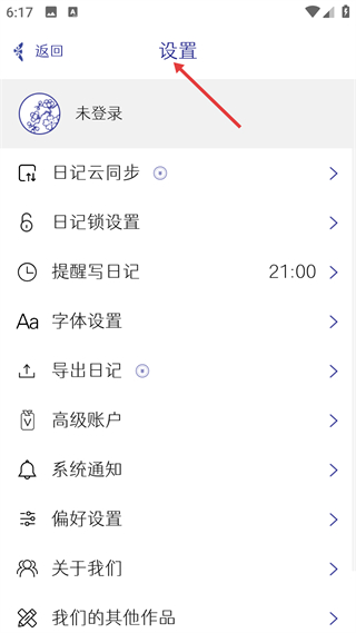 2、設置界面含日記云同步等功能,部分需高級賬戶權限,可配置寫日記提醒、字體等,滿足個性化使用需求。