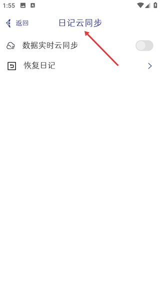 3、日記云同步界面設實時同步開關及恢復功能,開啟后日記同步至云端,避免本地數據丟失,保障數據安全。